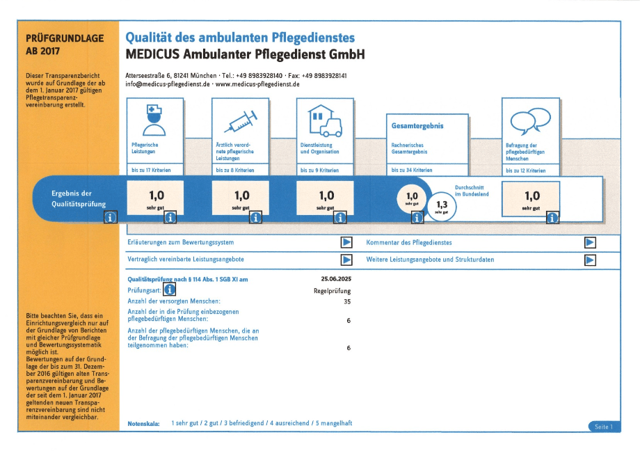 Wir wurden vom medizinischen Dienst der gesetzlichen Krankenversicherung (GKV) mit Bestnoten bewertet.
